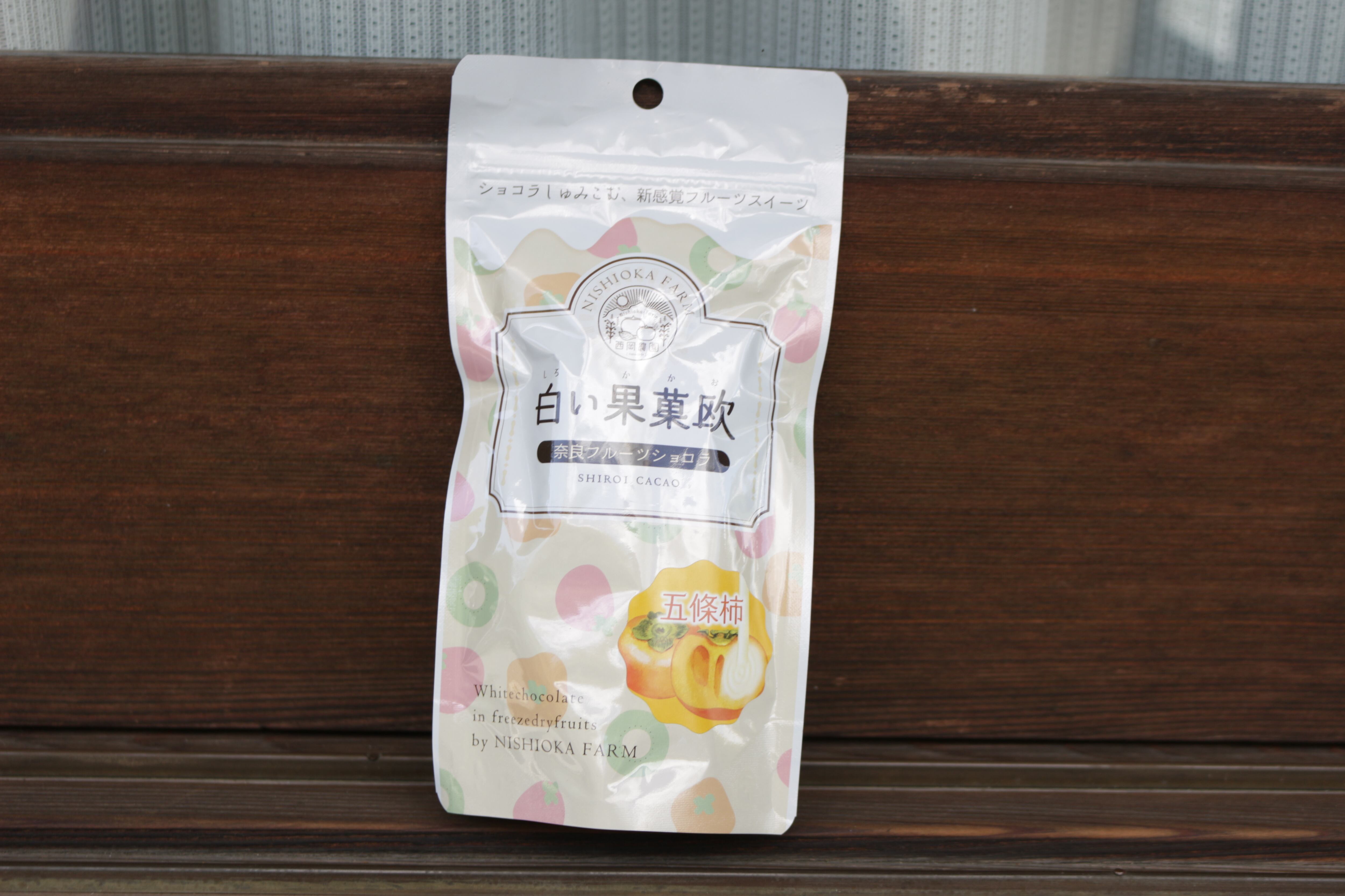 フリーズドライにした果実をホワイトチョコレートに浸し、真空の状態でしみこませました。果実のサクサク食感にジュワっと広がるチョコレートの甘みで思わず笑みがこぼれます。柿はカリッと食感が特徴。じんわりと柿の旨味と甘みが広がります。